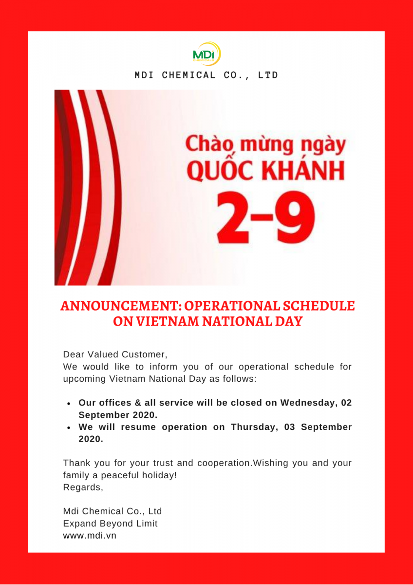 Announcement: Operational Schedule On Vietnam National Day