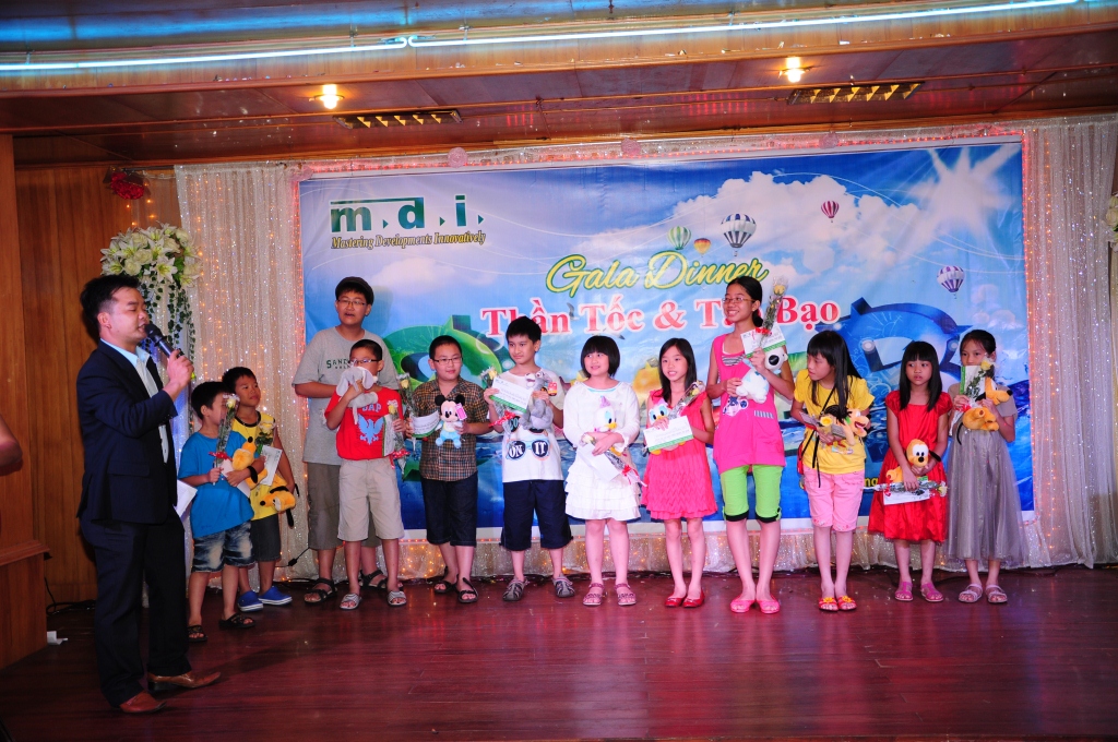The party was more exciting when there were awards for excellent pupils - the staff’s children - in the year 2012 as well as the Lucky Drawing game for all the children there. Although the gifts were small, but they expressed the interest and encouragement of MDI board to the staffs and their families.